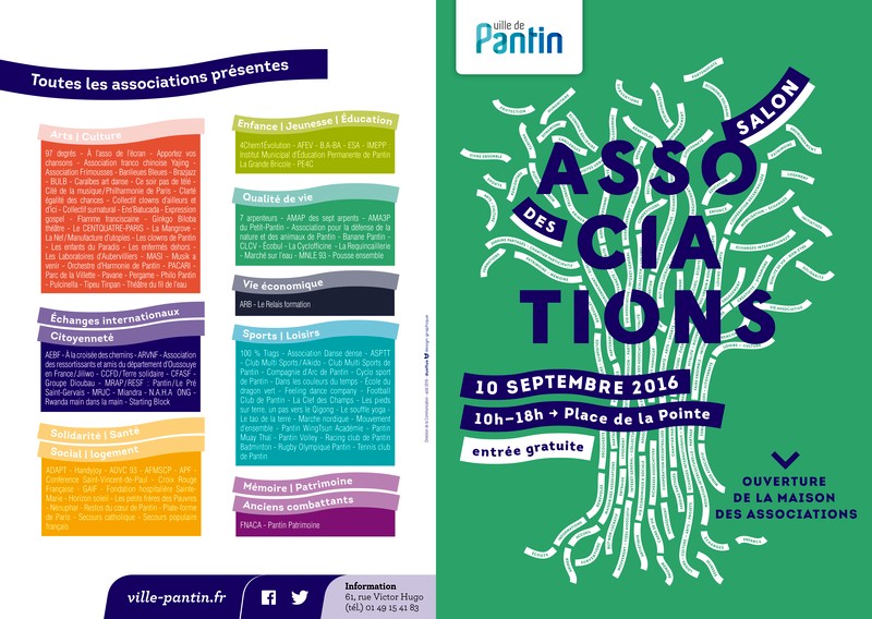 22ème salon des Associations de Pantin - Rendez-vous Place de la Pointe stand 63a